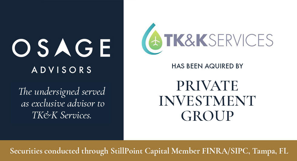 Osage Advisors (“Osage”), a leading Connecticut- based mergers and acquisitions firm, is pleased to announce the sale of its client, TK&K Services, LLC, to a private investment group. Osage Advisors served as the exclusive financial advisor to TK&K in connection with the transaction.